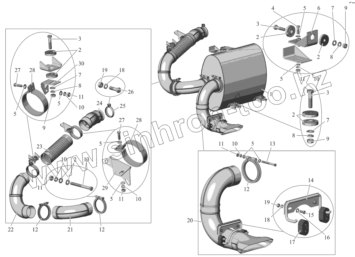 Каталог запасных частей к технике: АМАЗ МАЗ-206/226. Установка системы выпуска отработавших газов 206060-1200001