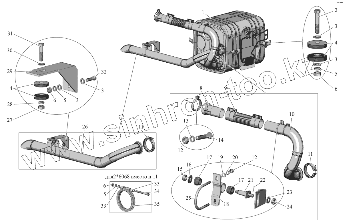 Каталог запасных частей к технике: АМАЗ МАЗ-206/226. Установка системы выпуска отработавших газов 206069-1200001