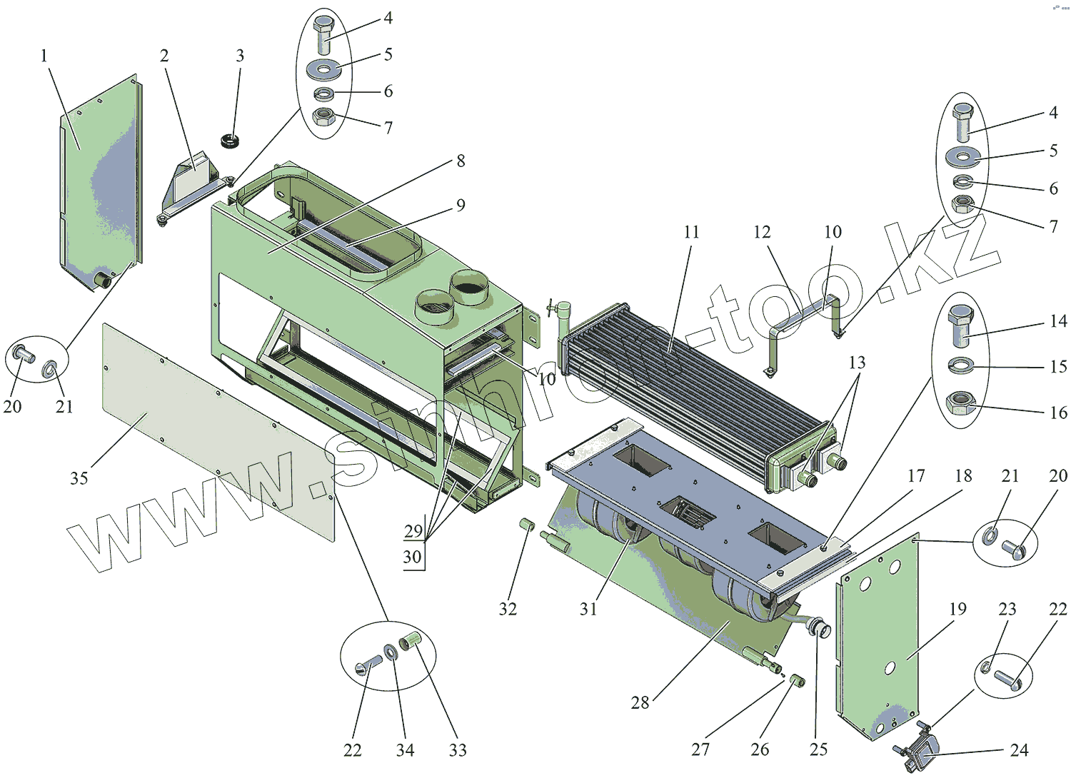 Каталог запасных частей к технике: АМАЗ МАЗ-215. Фронтальный отопитель 103065-8101002