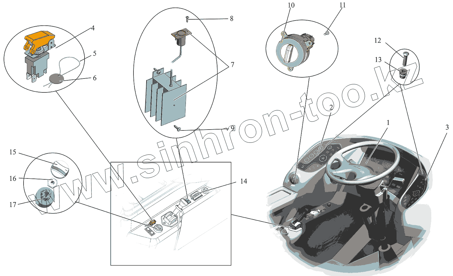 Каталог запасных частей к технике: АМАЗ МАЗ-215. Рабочее место водителя МАЗ 215069