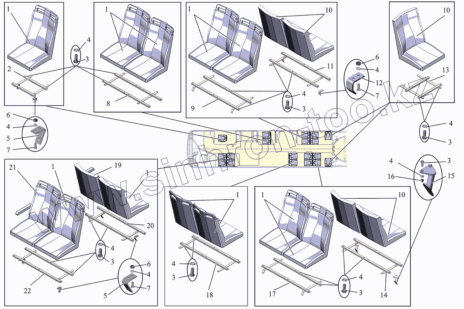 Каталог запасных частей к технике: АМАЗ МАЗ-215. Сиденья секции I