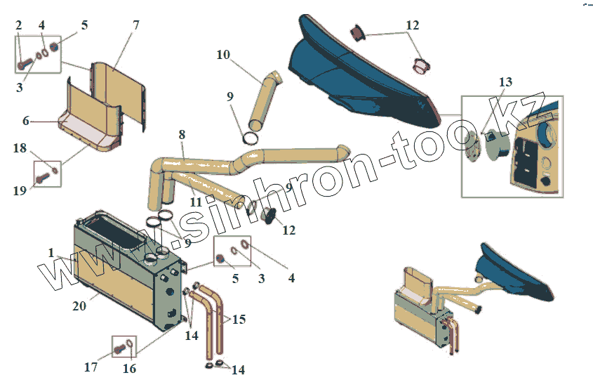 Каталог запасных частей к технике: АМАЗ МАЗ-215. Установка фронтального отопителя 203065-8100006