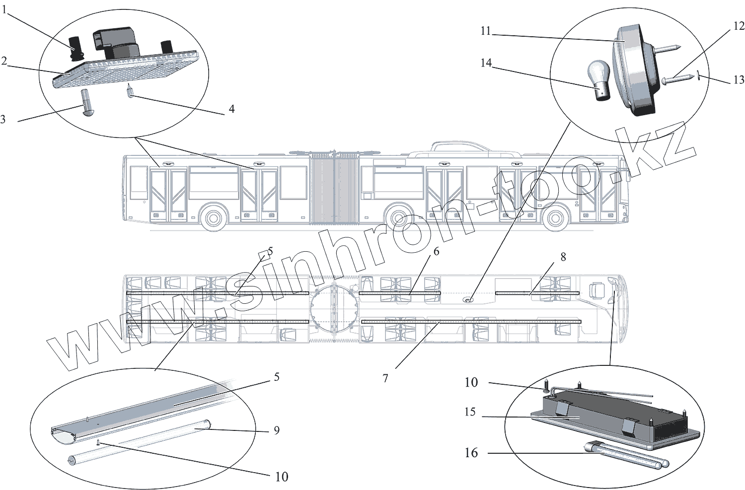 Каталог запасных частей к технике: АМАЗ МАЗ-215. Установка освещения дверных проемов и салона