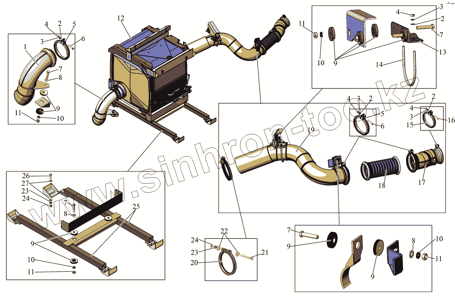 Каталог запасных частей к технике: АМАЗ МАЗ-215. Установка системы выпуска отработавших газов