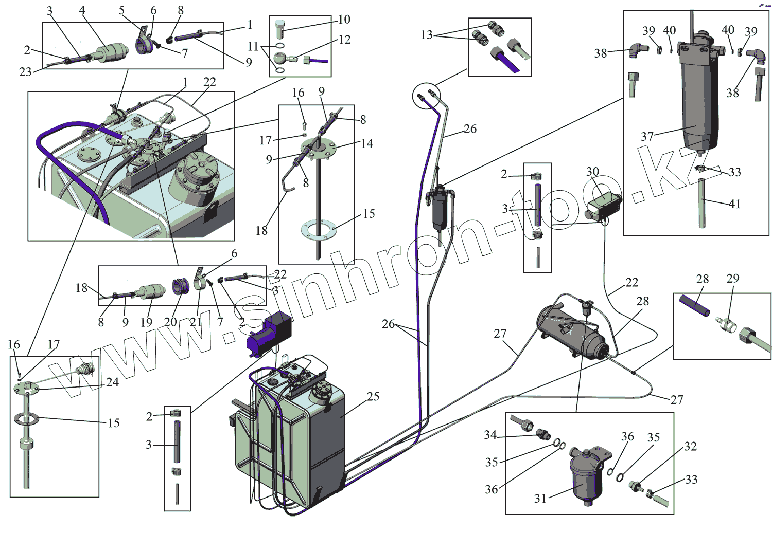 Каталог запасных частей к технике: АМАЗ МАЗ-215. Установка топливопроводов