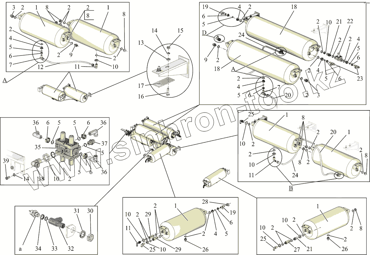Каталог запасных частей к технике: АМАЗ МАЗ-231. Блок ресиверов и защитные устройства