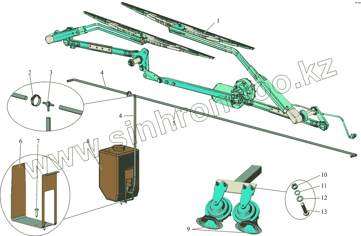 Каталог запасных частей к технике: АМАЗ МАЗ-231. Стеклоочиститель, стеклоомыватель, звуковые сигналы