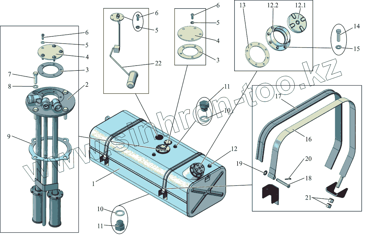 Каталог запасных частей к технике: АМАЗ МАЗ-231. Топливный бак. Крепление топливного бака