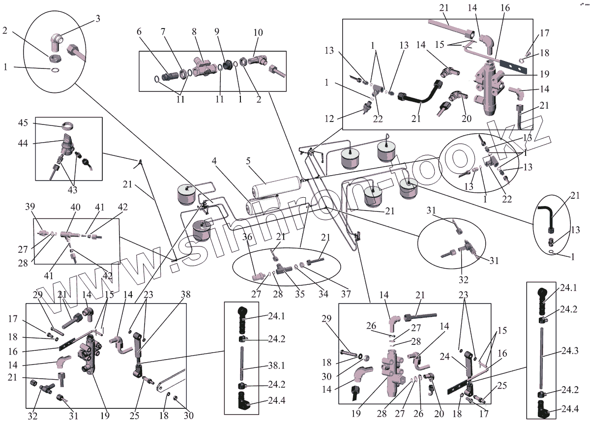 Каталог запасных частей к технике: АМАЗ МАЗ-231. Трубопроводы пневмоподвески