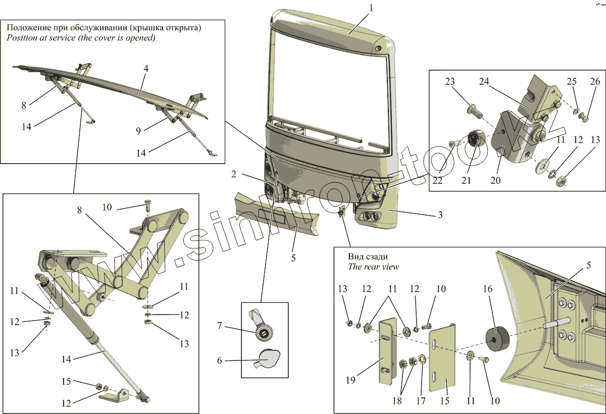 Каталог запасных частей к технике: АМАЗ МАЗ-231. Установка буфера и деталей облицовки передка
