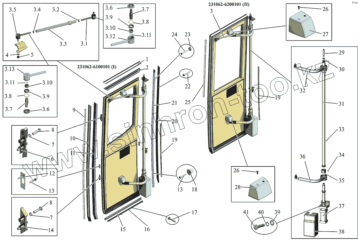 Каталог запасных частей к технике: АМАЗ МАЗ-231. Установка дверей пассажирских 231062-6100003