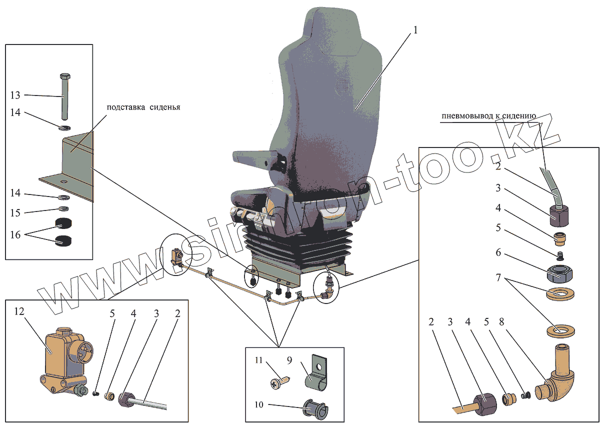 Установка и пневмопитание сидения водителя 203065-6800006-10