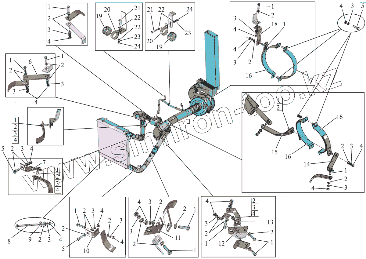 Каталог запасных частей к технике: АМАЗ МАЗ-231. Установка креплений воздухоочистителя и охладителя наддувочного воздуха