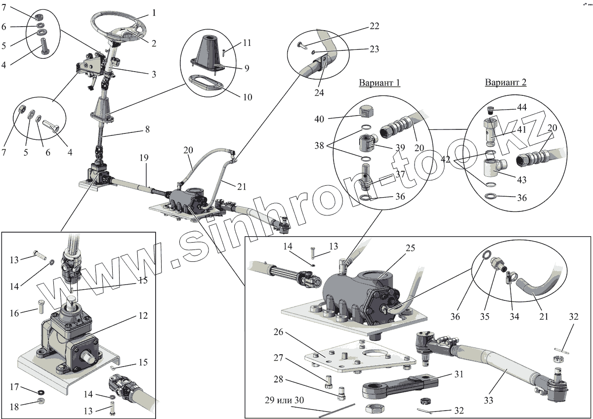 Каталог запасных частей к технике: АМАЗ МАЗ-231. Установка рулевого управления