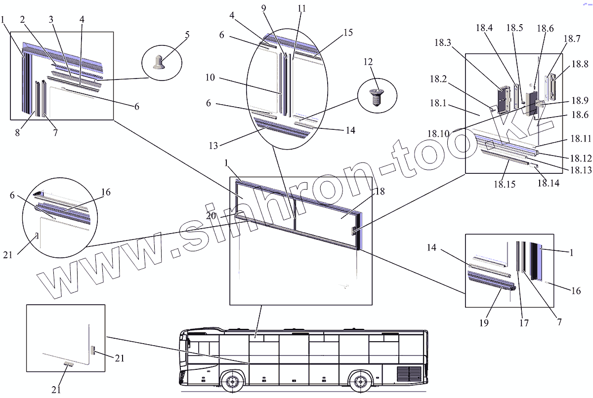 Каталог запасных частей к технике: АМАЗ МАЗ-231. Установка сдвижных форточек