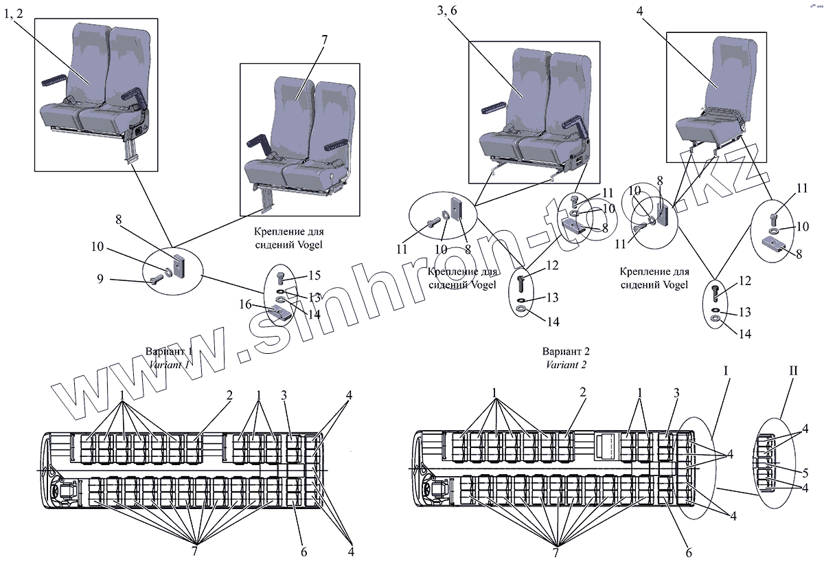 Каталог запасных частей к технике: АМАЗ МАЗ-231. Установка сидений