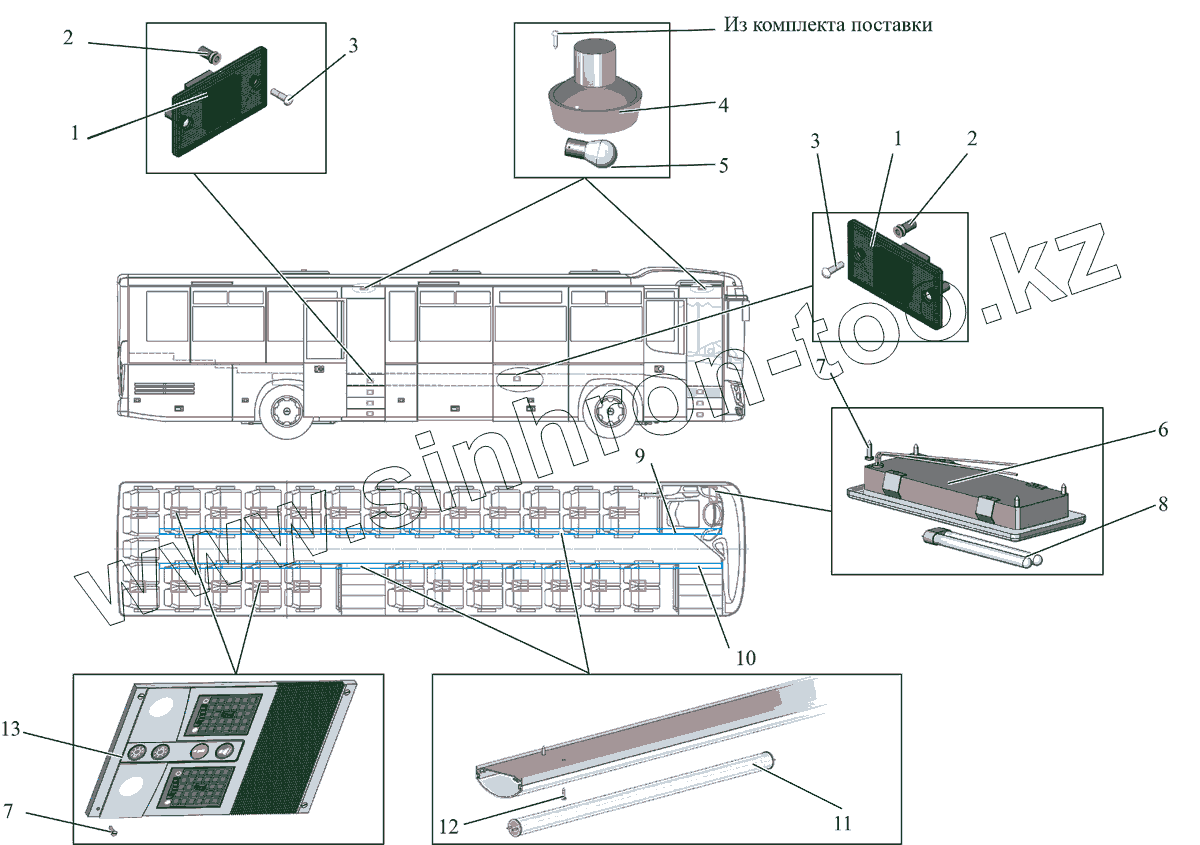 Каталог запасных частей к технике: АМАЗ МАЗ-231. Установка внутренней светотехники