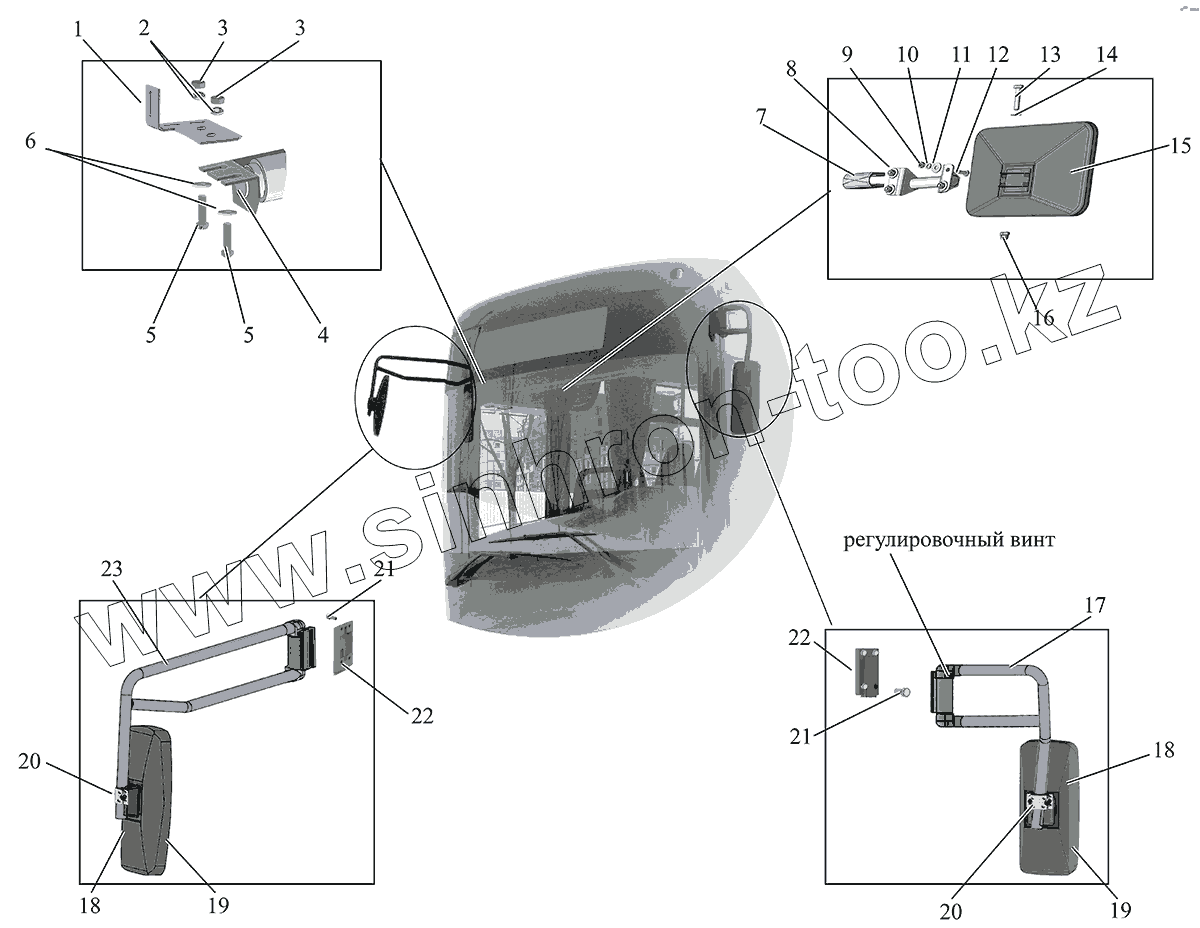 Каталог запасных частей к технике: АМАЗ МАЗ-231. Установка зеркал и шторки противосолнечной