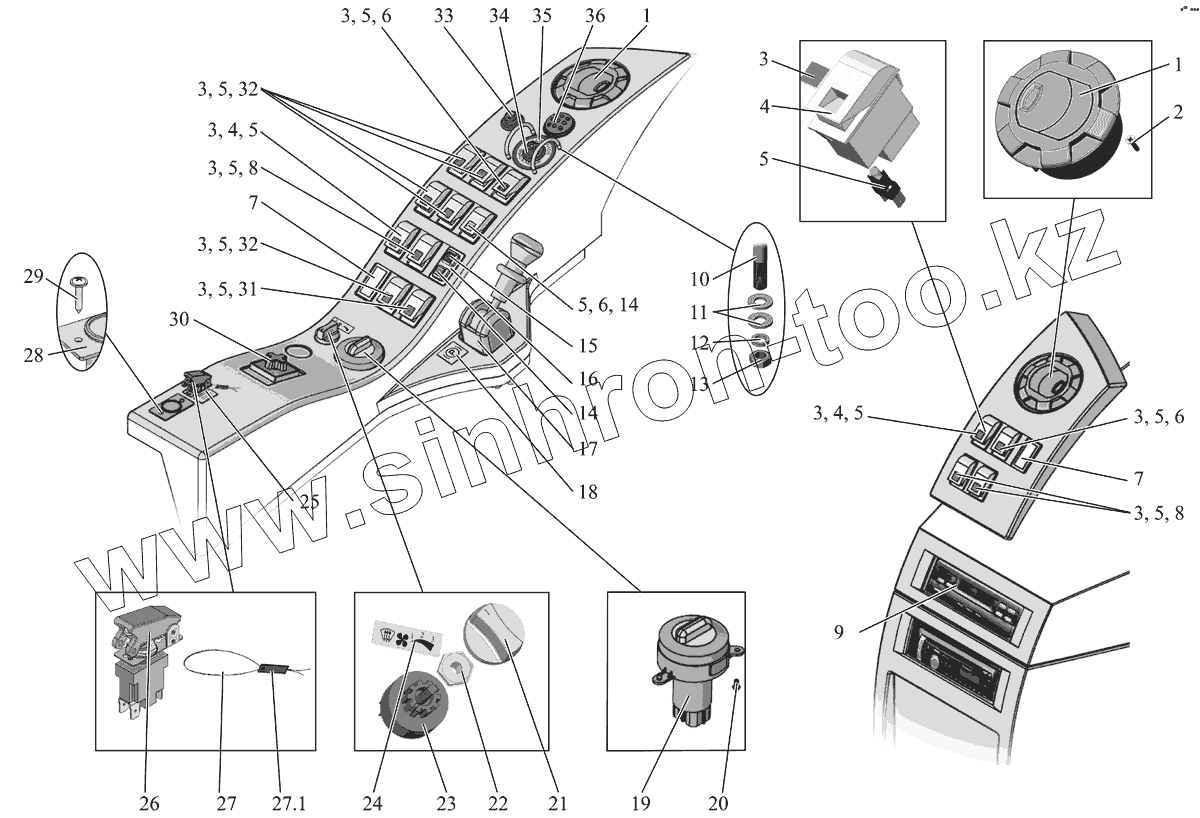 | 19 | 2003.3769-01 | Переключатель центральный света | |