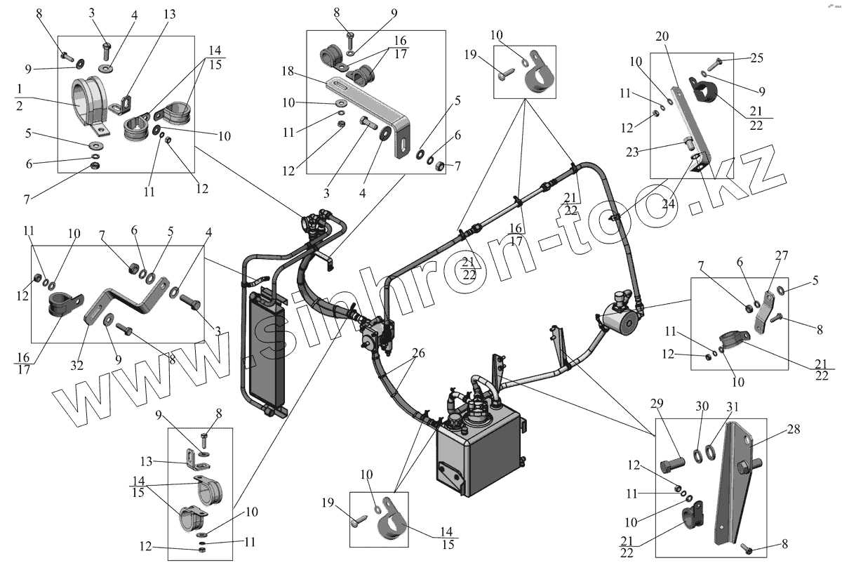 Каталог запасных частей к технике: АМАЗ МАЗ-251. Крепление шлангов гидропривода вентилятора