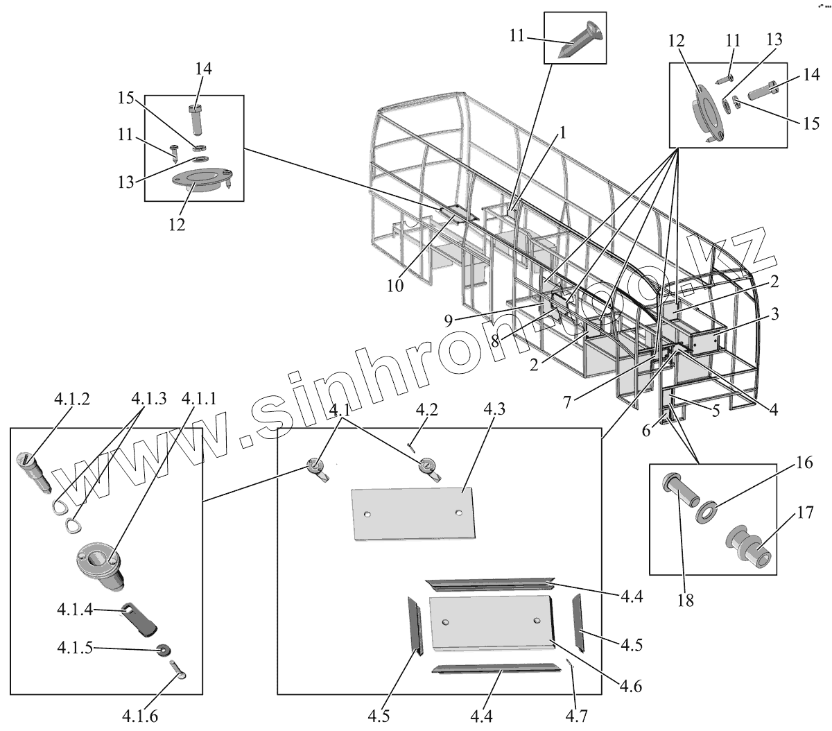 Каталог запасных частей к технике: АМАЗ МАЗ-251. Технологические люки пола 251050-5113010