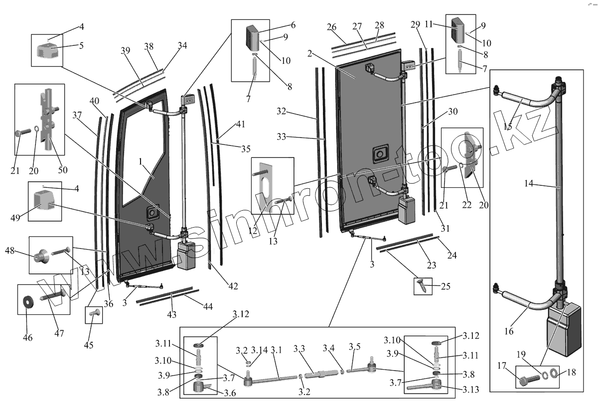 Каталог запасных частей к технике: АМАЗ МАЗ-251. Установка дверей 251050-6100003