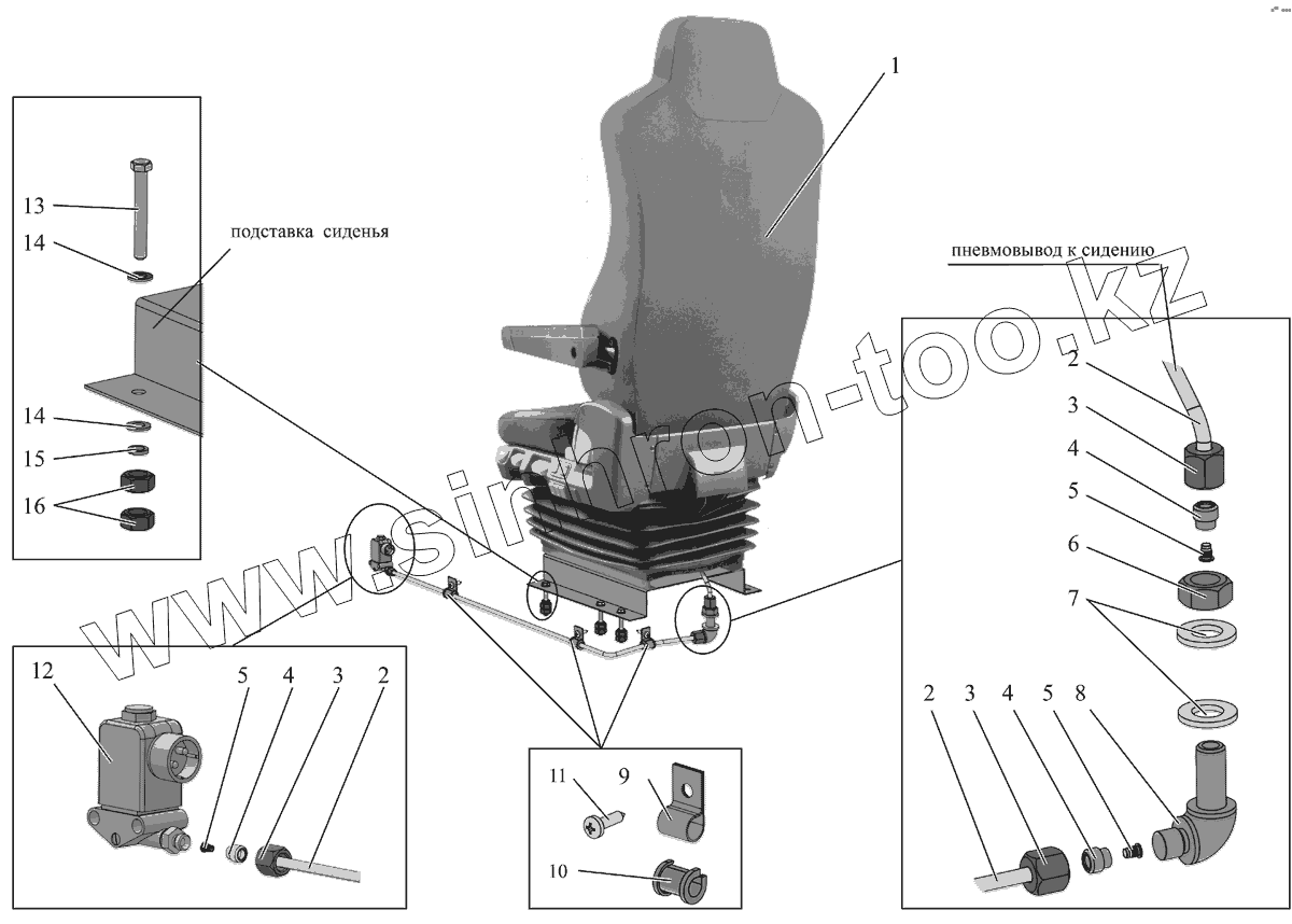 Каталог запасных частей к технике: АМАЗ МАЗ-251. Установка и пневмопитание сидения водителя 251-6800006-10