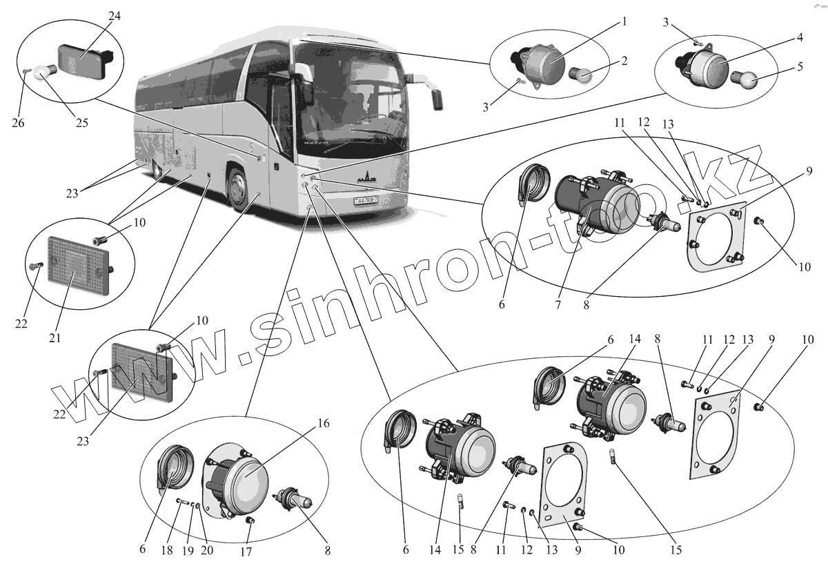 Каталог запасных частей к технике: АМАЗ МАЗ-251. Установка наружной светотехники