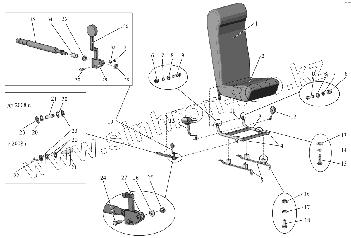 Каталог запасных частей к технике: АМАЗ МАЗ-251. Установка сидений (одноместные сиденья) 251-6830010