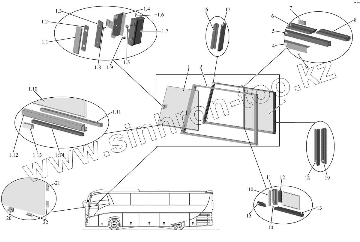 Каталог запасных частей к технике: АМАЗ МАЗ-251. Установка стёкол, окно водителя