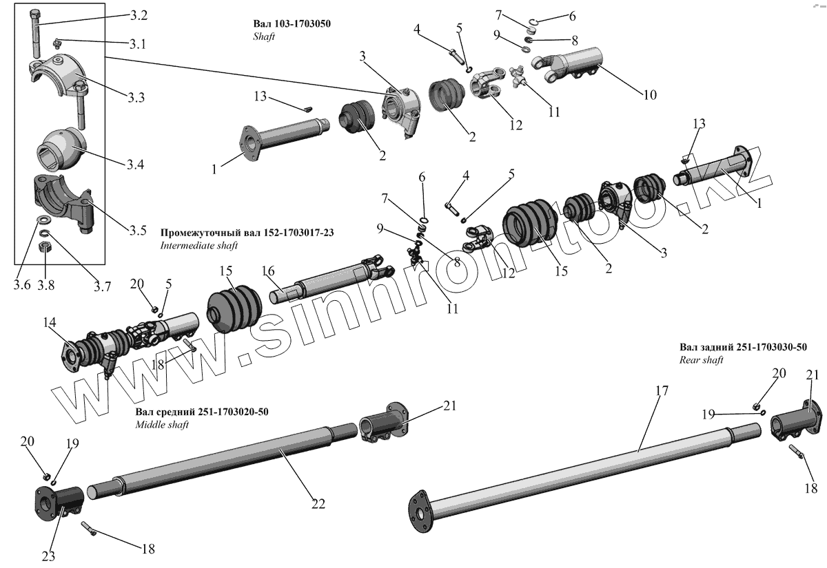 Каталог запасных частей к технике: АМАЗ МАЗ-251. Валы