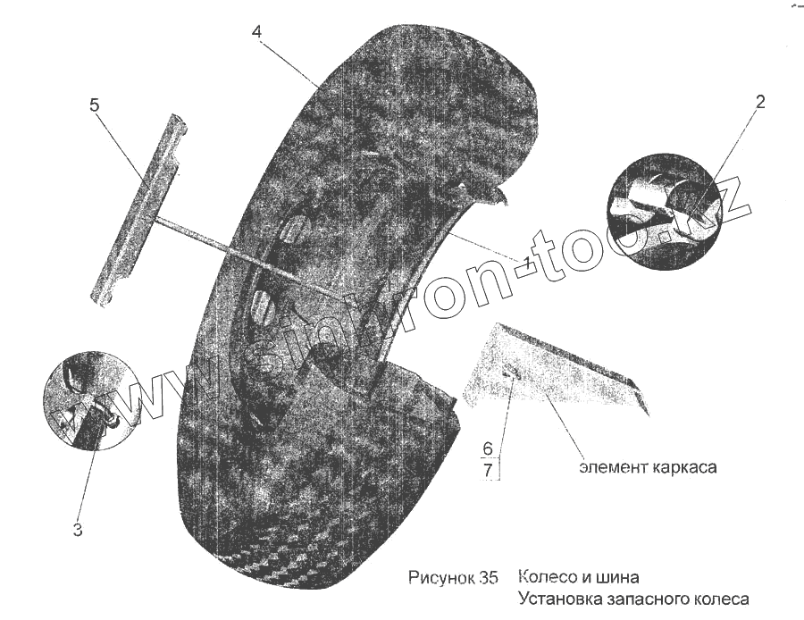Каталог запасных частей к технике: АМАЗ МАЗ-256. Колесо и шина. Установка запасного колеса