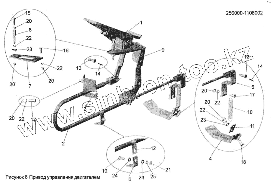 Каталог запасных частей к технике: АМАЗ МАЗ-256. Привод управления двигателем 256000-1108002