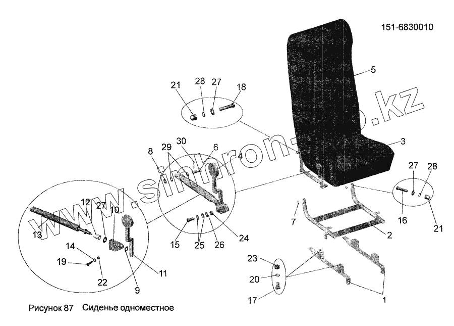 Каталог запасных частей к технике: АМАЗ МАЗ-256. Сиденье одноместное 151-6830010