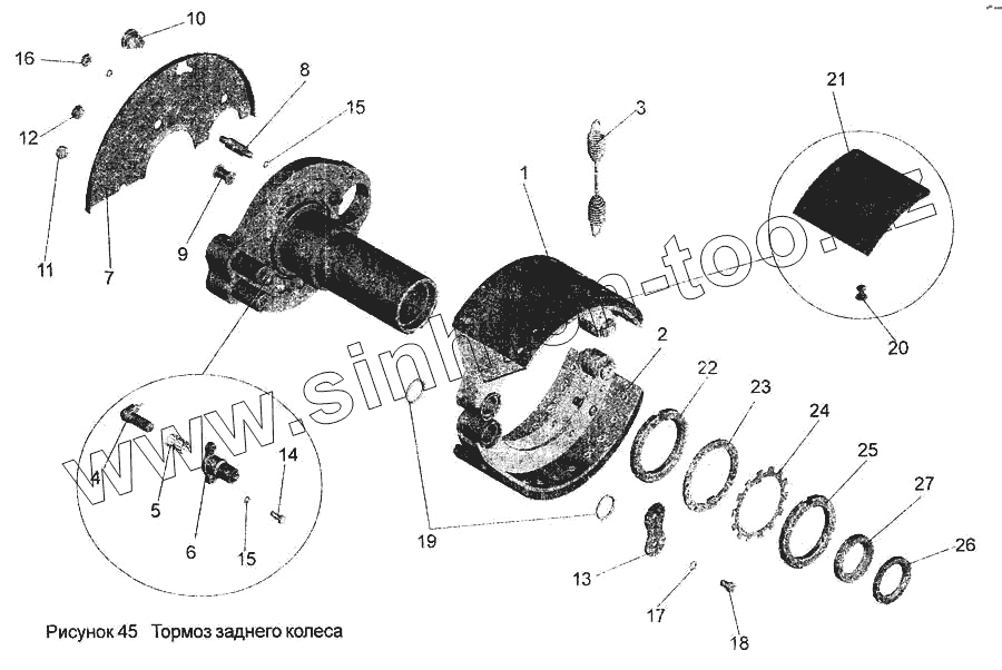 Каталог запасных частей к технике: АМАЗ МАЗ-256. Тормоз заднего колеса