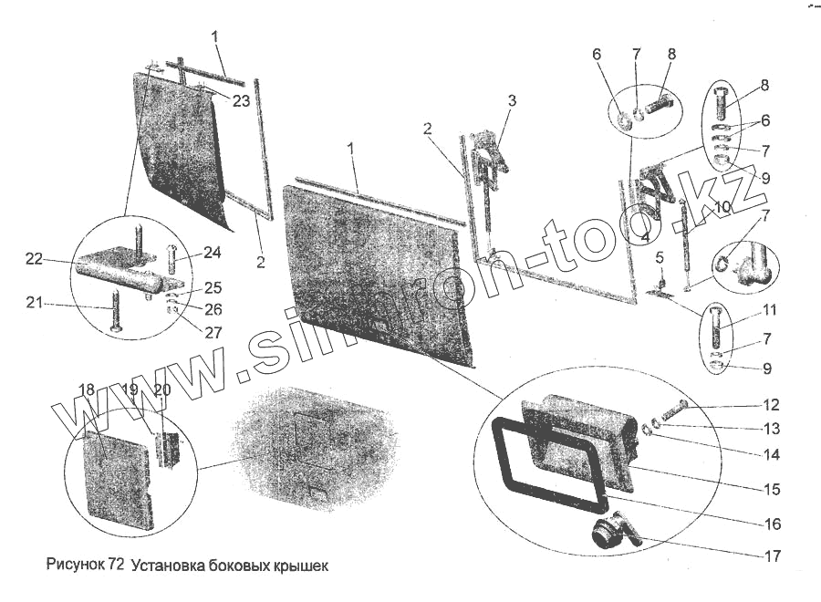 Каталог запасных частей к технике: АМАЗ МАЗ-256. Установка боковых крышек