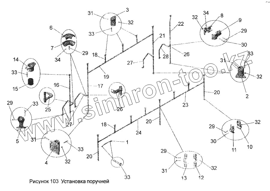 Каталог запасных частей к технике: АМАЗ МАЗ-256. Установка поручней 256200-8202010
