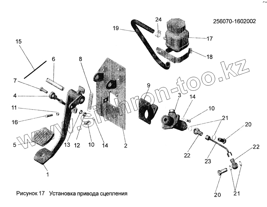 Каталог запасных частей к технике: АМАЗ МАЗ-256. Установка привода сцепления 256070-1602002
