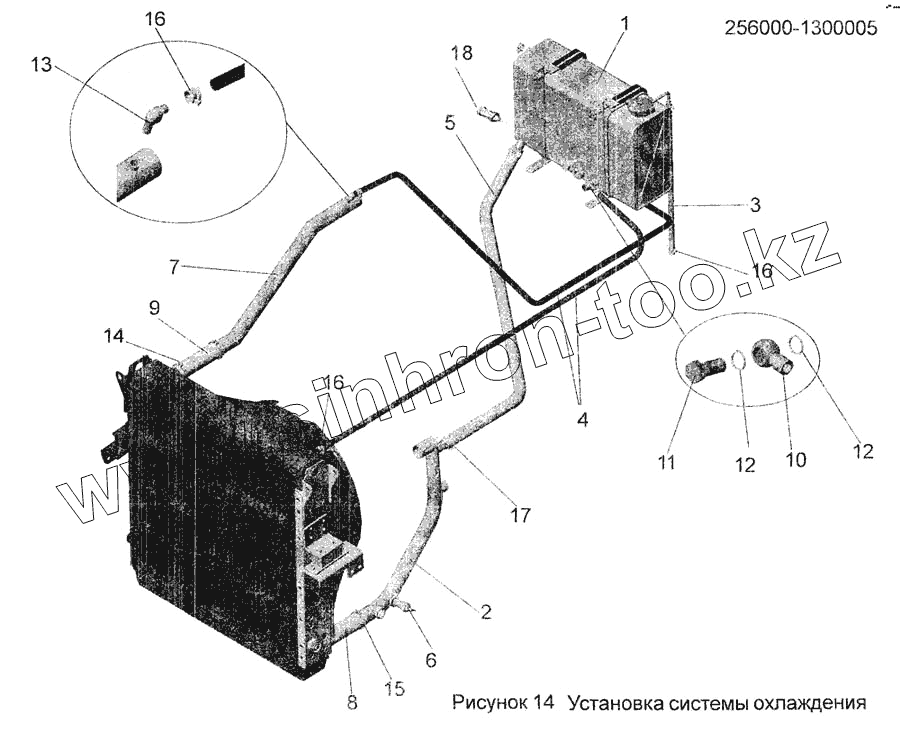 Каталог запасных частей к технике: АМАЗ МАЗ-256. Установка системы охлаждения 256000-1300005