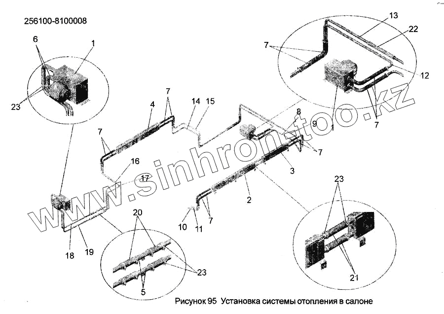 Каталог запасных частей к технике: АМАЗ МАЗ-256. Установка системы отопления в салоне 256100-8100008