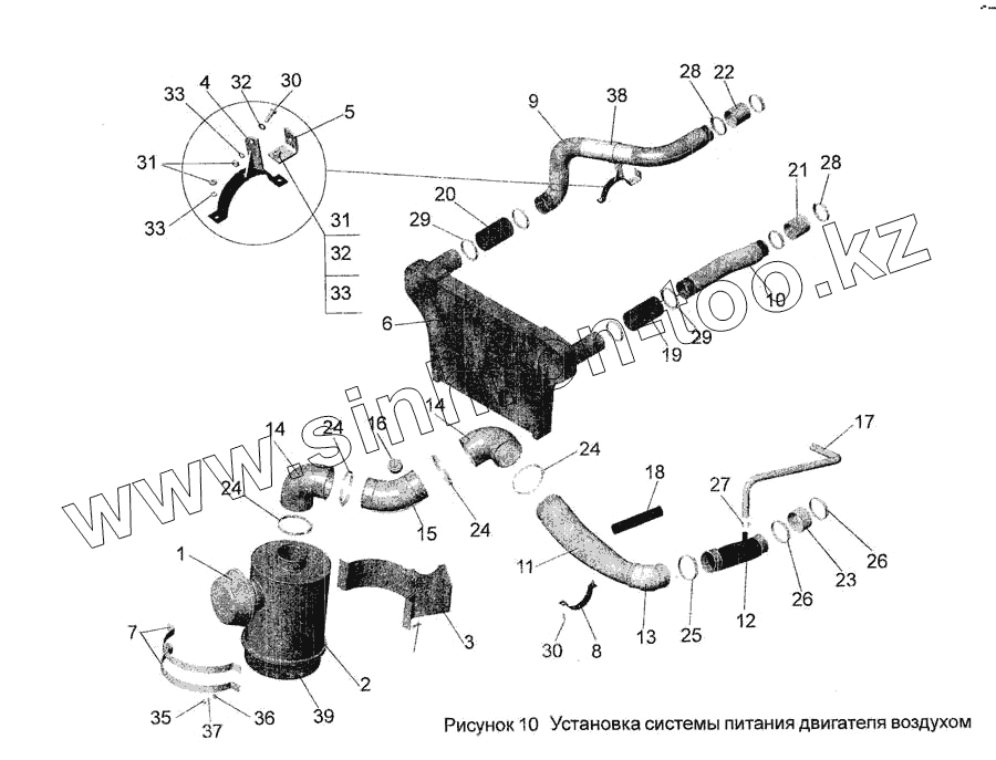 Каталог запасных частей к технике: АМАЗ МАЗ-256. Установка системы питания двигателя воздухом
