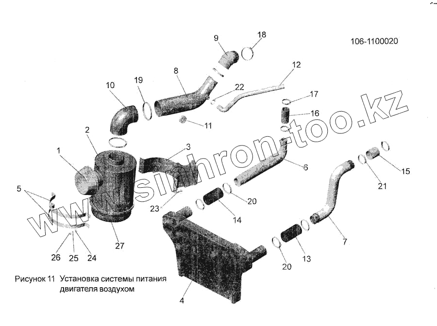Каталог запасных частей к технике: АМАЗ МАЗ-256. Установка системы питания двигателя воздухом 106-1100020