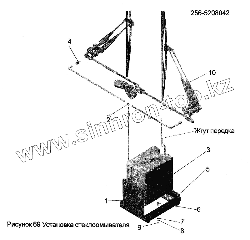 Каталог запасных частей к технике: АМАЗ МАЗ-256. Установка стеклоомывателя 256-5208042