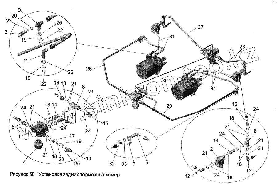Каталог запасных частей к технике: АМАЗ МАЗ-256. Установка задних тормозных камер