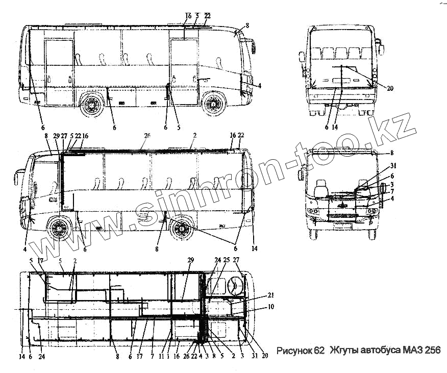 Каталог запасных частей к технике: АМАЗ МАЗ-256. Жгуты автобуса МАЗ 256