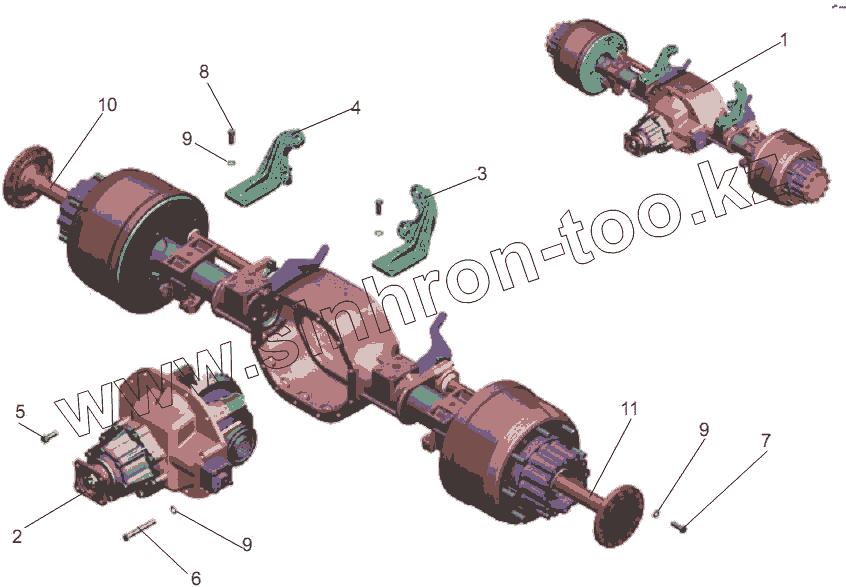 Каталог запасных частей к технике: АМАЗ МАЗ-256 (вариант). Мост задний. Установка редуктора