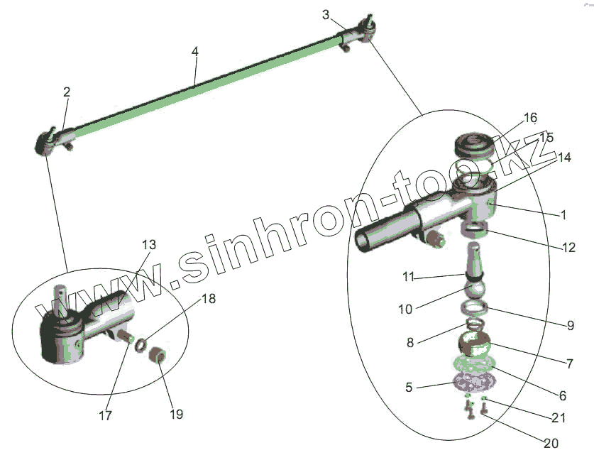 Каталог запасных частей к технике: АМАЗ МАЗ-256 (вариант). Тяга поперечная рулевая