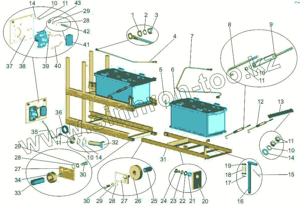 Каталог запасных частей к технике: АМАЗ МАЗ-256 (вариант). Установка аккумуляторных батарей
