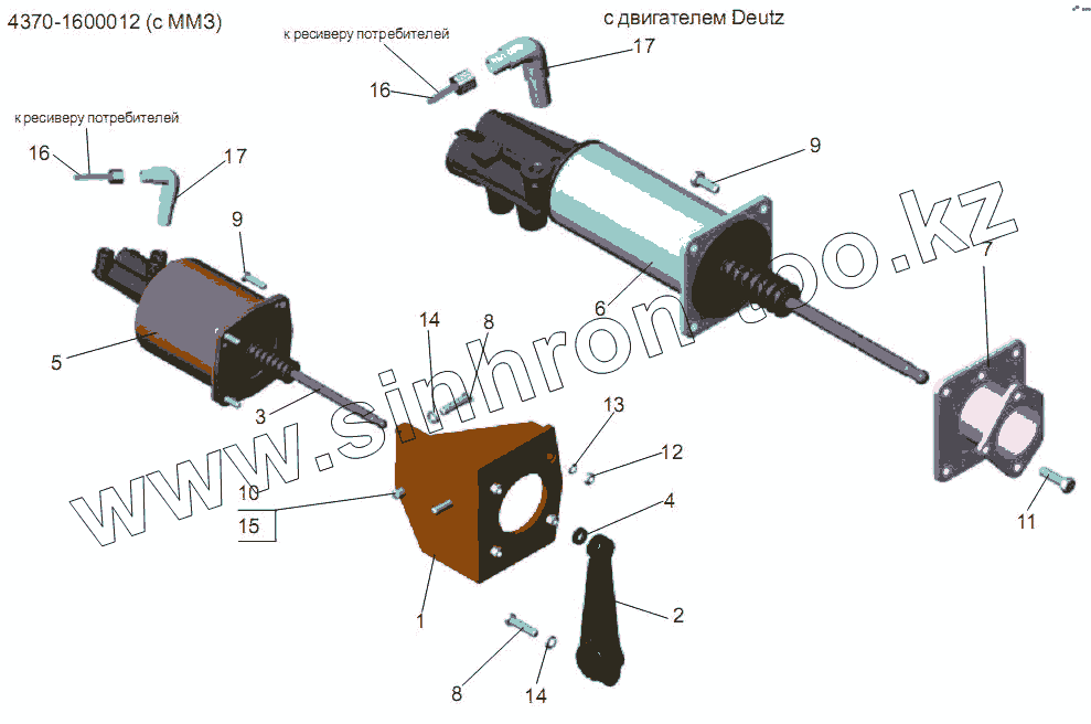 Каталог запасных частей к технике: АМАЗ МАЗ-256 (вариант). Установка ПГУ привода сцепления