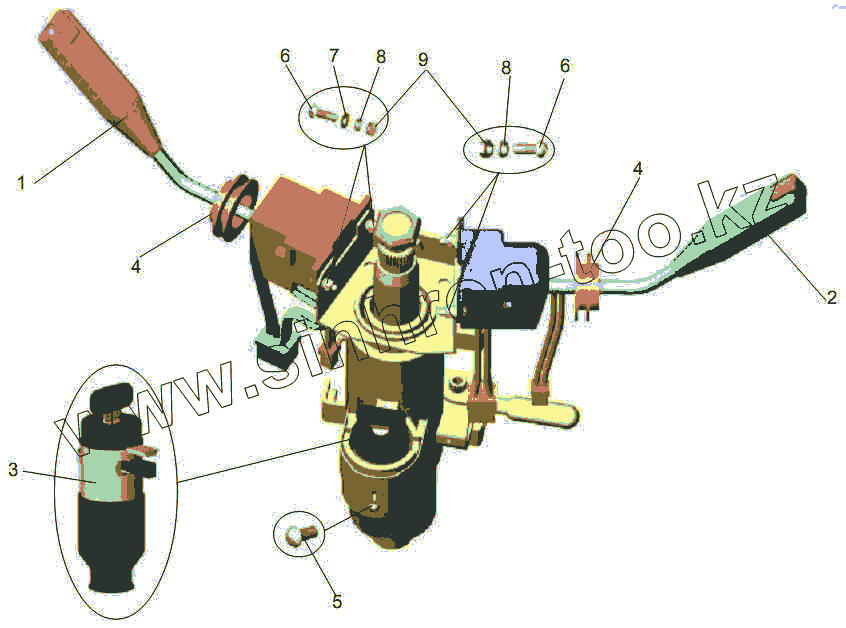 Каталог запасных частей к технике: АМАЗ МАЗ-256 (вариант). Установка подрулевых переключателей и замка зажигания